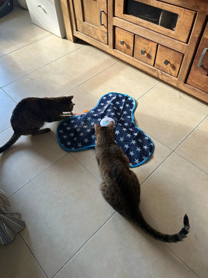 Perfect for rainy days and lazy evenings — gives the cat mental exercise so she naps longer later.
